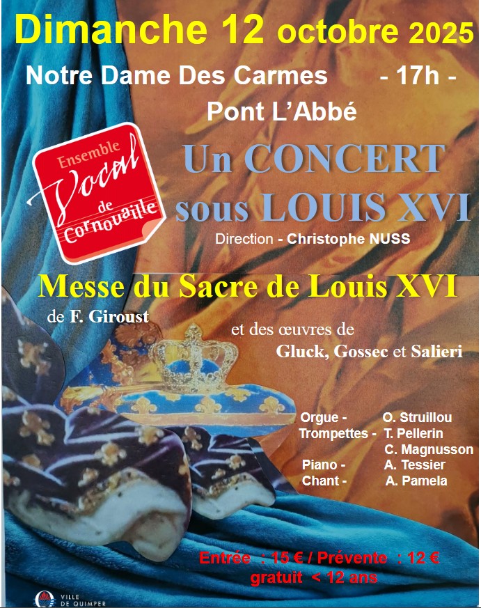 L'ensemble vocal de Cornouailles propose de redécouvrir une oeuvre majeure de François Giroust, La messe du sacre de Louis XVI avec orge et trompettes, donnée en seconde partie. En première, on entendra des oeuvres de Gluck, de Gossec et de Salieri.
