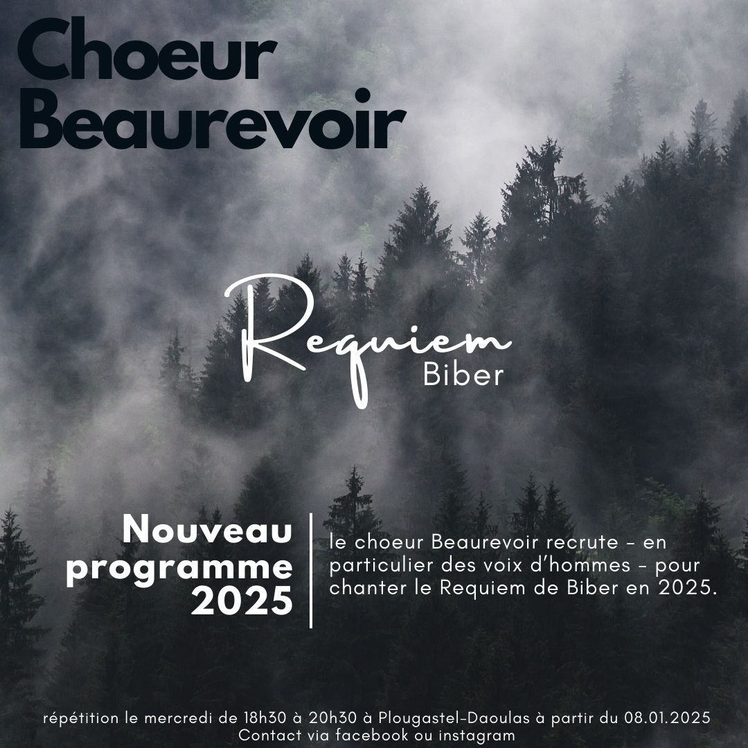 Après les concerts de Noël, Beaurevoir commence son nouveau programme, le requiem de Biber. Nous cherchons des basses et des ténors pour mettre en place ce beau programme.