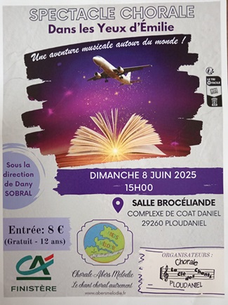 La chorale Abers Mélodie, sous la direction de Dany SOBRAL, se produira le Dimanche 8 Juin à la salle BROCELIANDE à PLOUDANIEL à 15H, à l'invitation de la chorale la CLE DES CHAMPS.