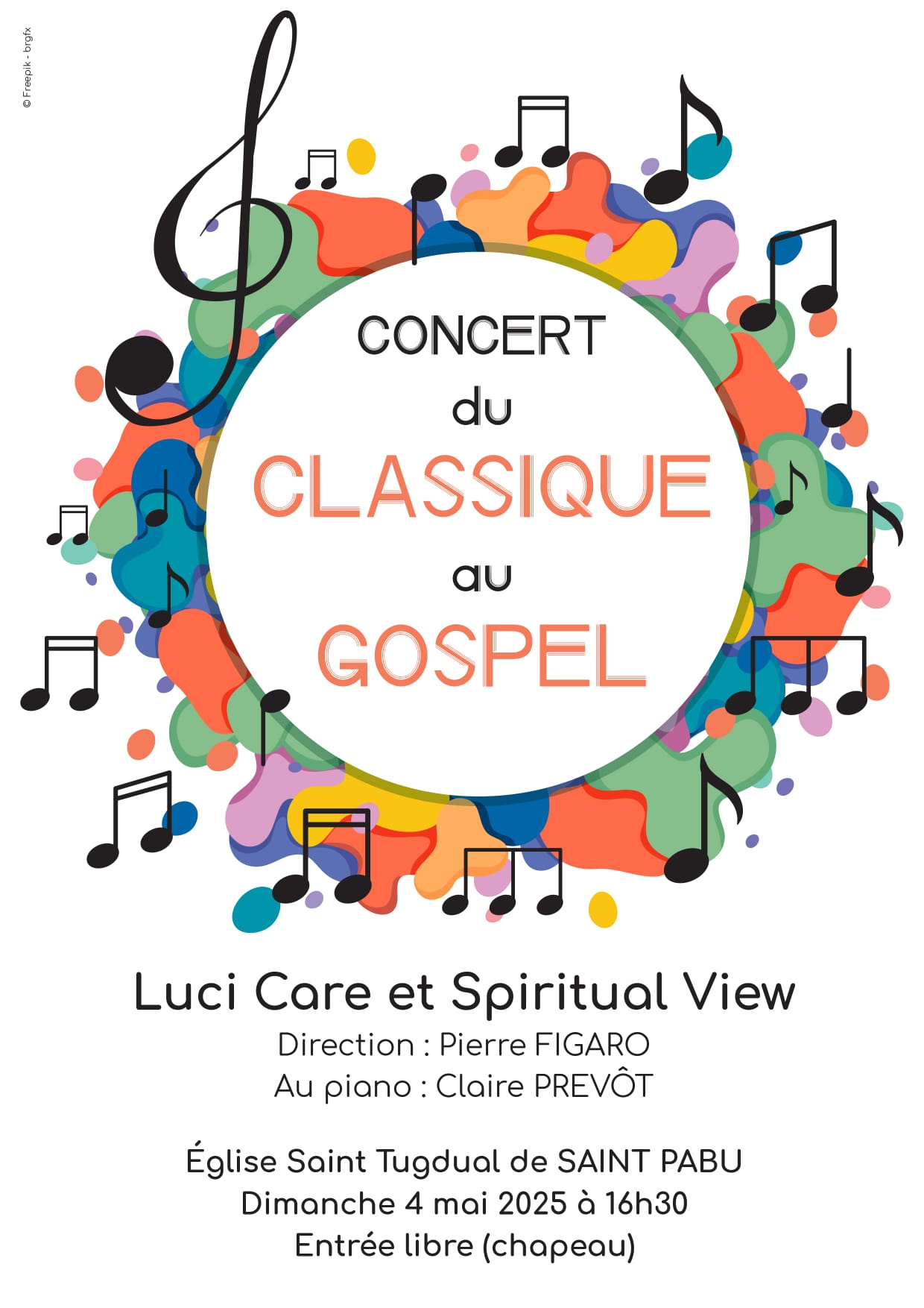 Concert de l'ensemble vocal Luci Care, et du groupe Spiritual View, tous deux dirigés par Pierre Figaro. Accompagnés au piano par Claire Riot.